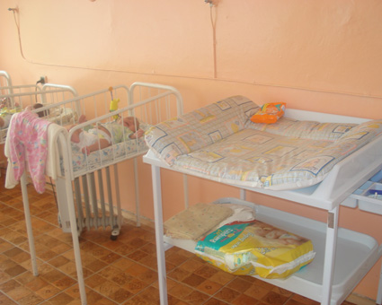 Вторая палата отказников. Мальчик скоро поедет домой. Здесь, так же, игрушки, стульчики, ходунки, ремонт - все с помощью нашего движения.